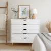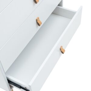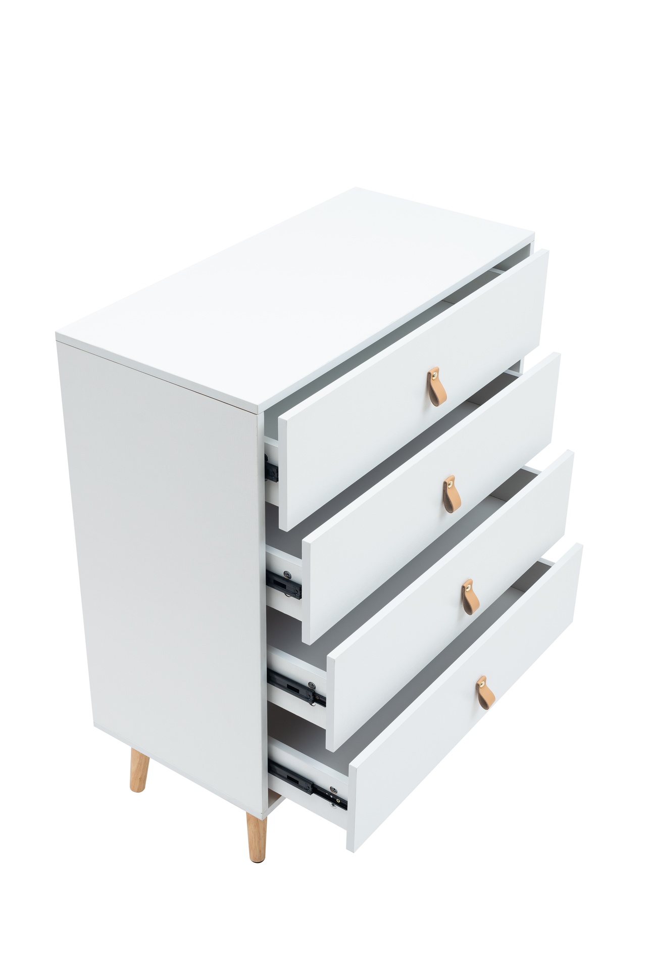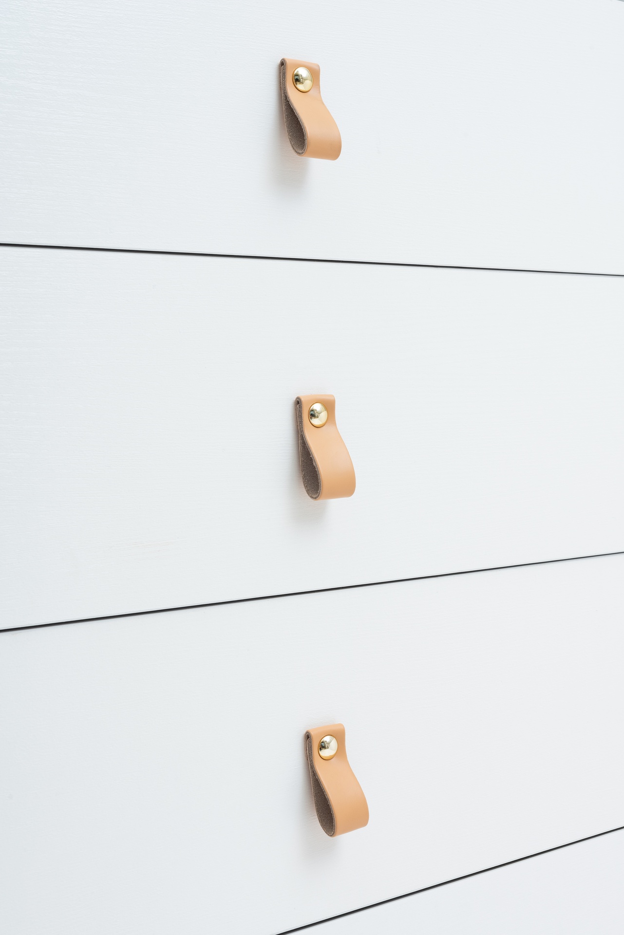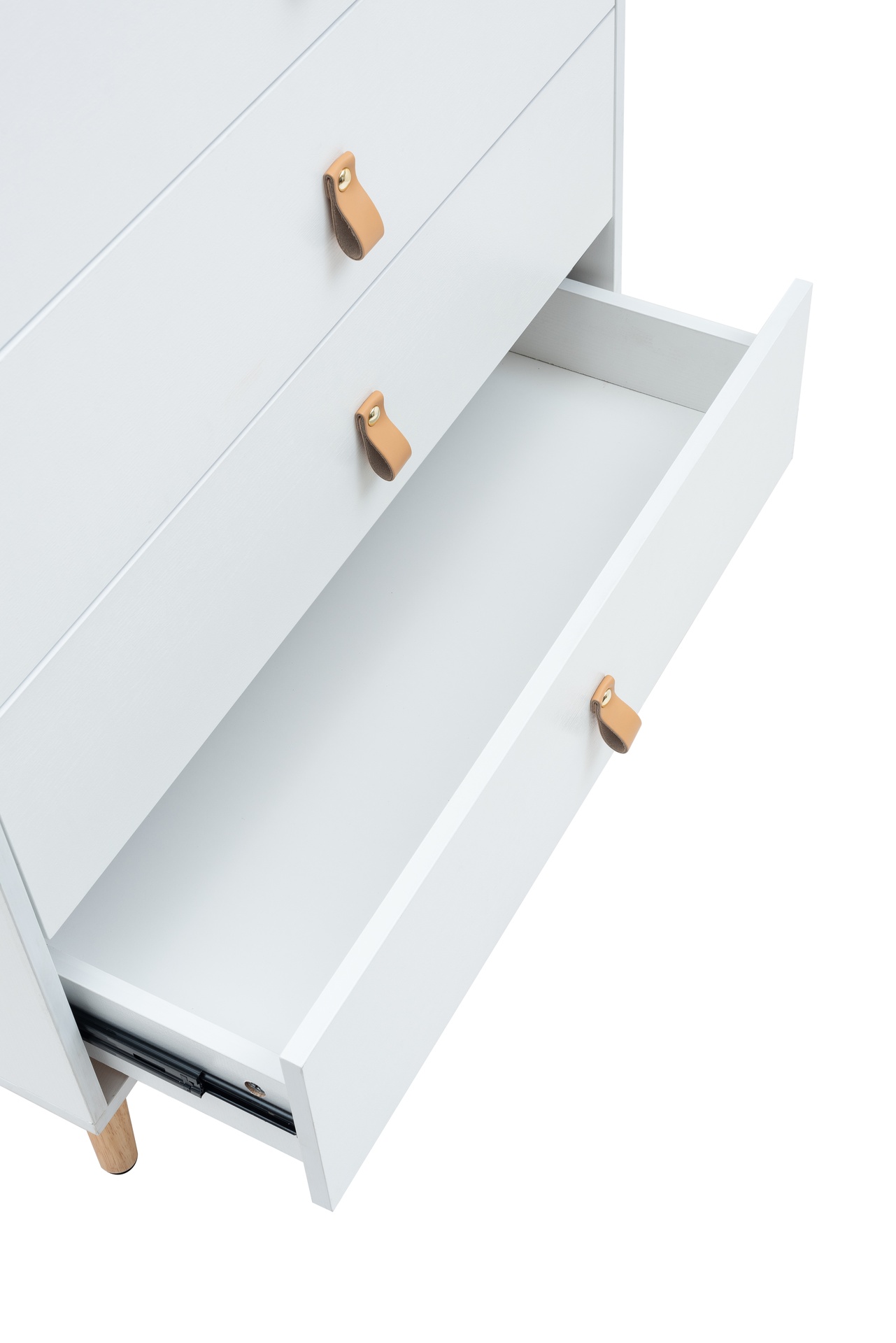 Materiales: Chasis en Melamina 15mm. Cajones con guías metálicas. Patas en madera de pino barnizadas. Tirador en PU (poliuretano) símil cuero.
