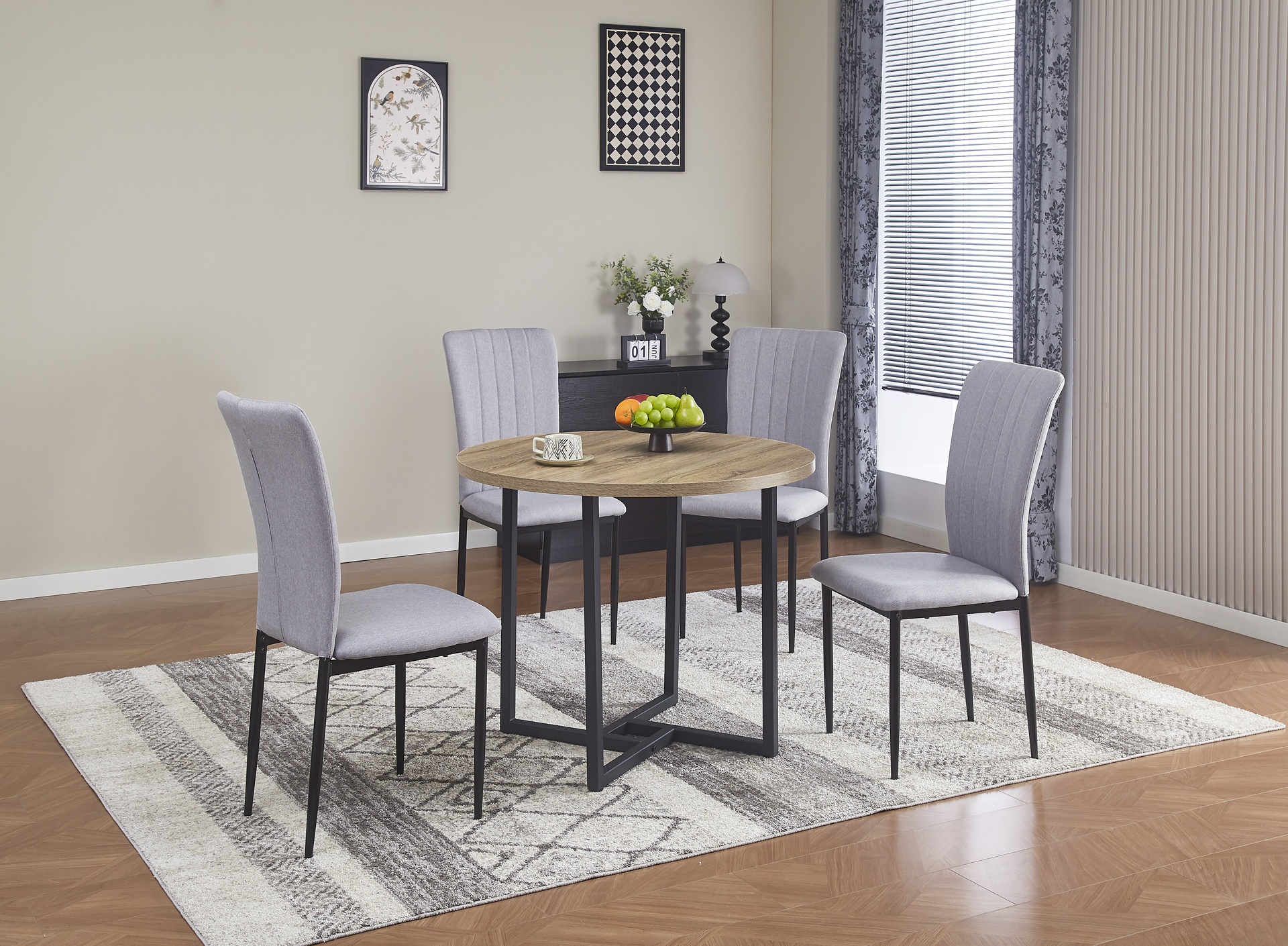 MESA CLEVELAND 2 TAPA REDONDA MELAMINA ASERRADA PATAS METAL