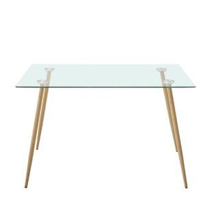 Medidas del producto (Ancho x Profundo x Alto): 1200x700x750mm Materiales: Tapa de cristal templado de 8mm. Patas de acero efecto madera aserrada. Producto desarmado o en Kit, requiere un mínimo montaje.
