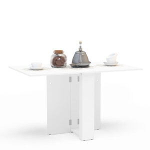 Materiales: Mesa de cocina abatible en color blanco. Acabado aglomerado melaminizado de 16 mm de espesor. Patas de polipropileno natural.