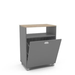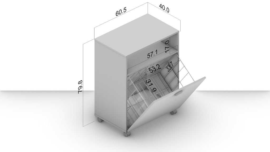 Materiales: Acabado aglomerado melaminizado de 16mm. Color gris con tapa aserrada. Tirador ABS pintado en gris plata.