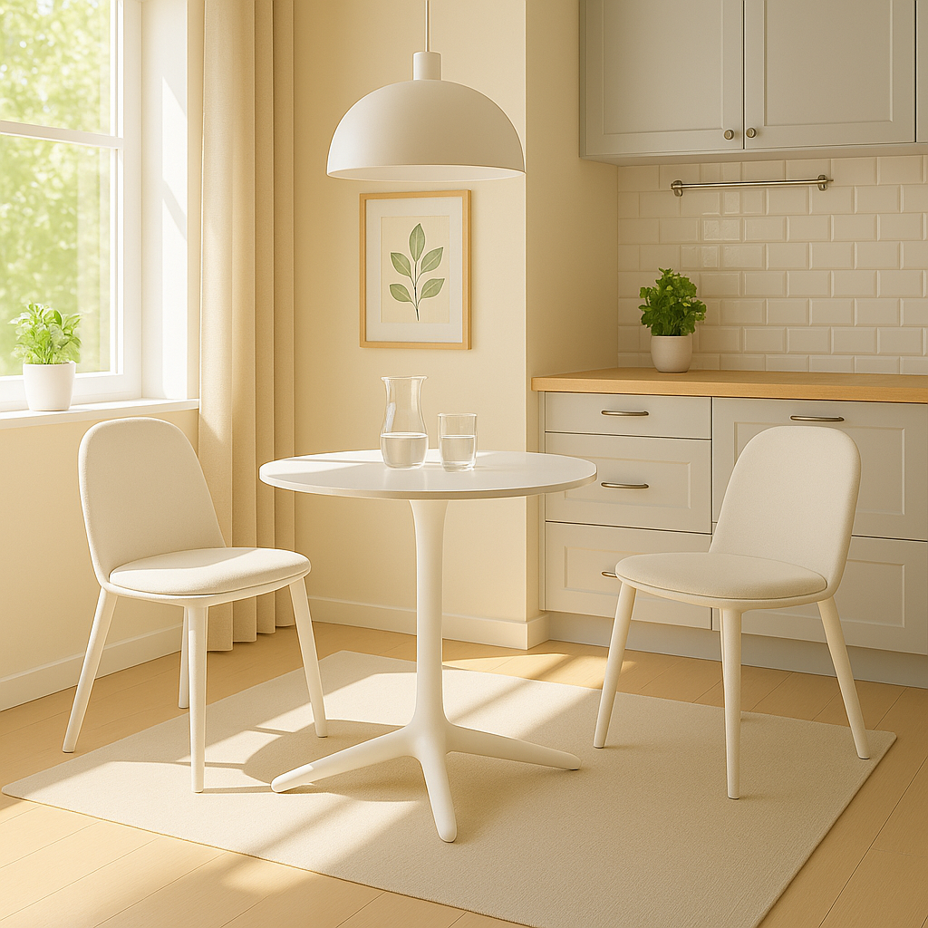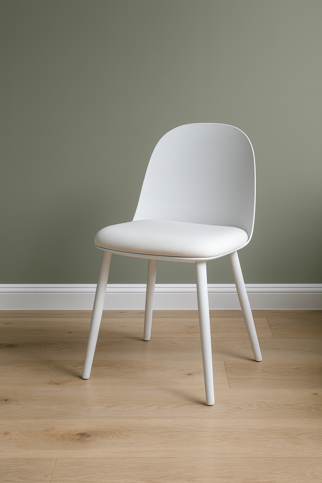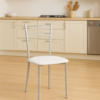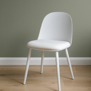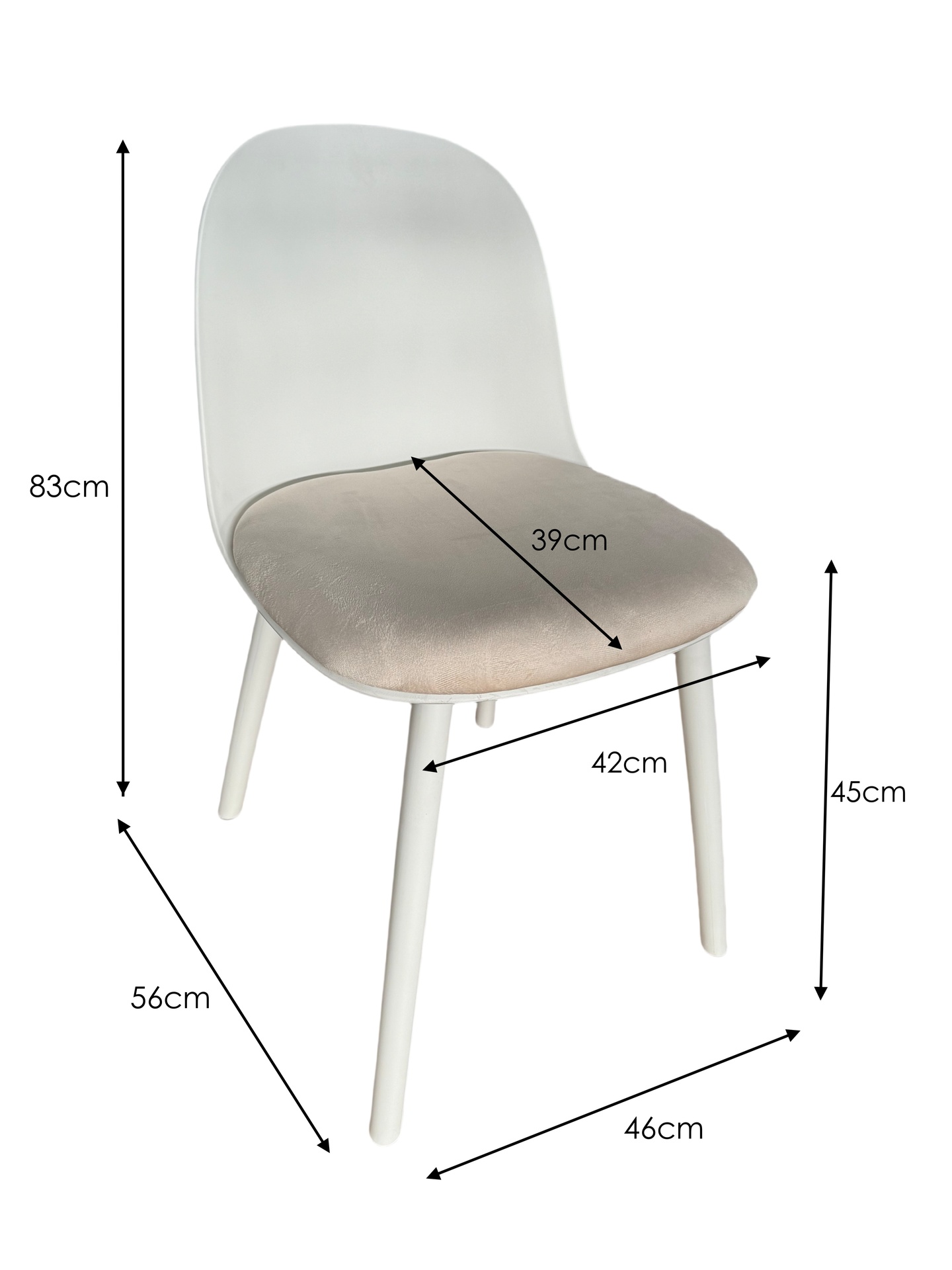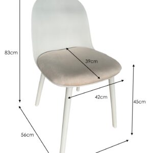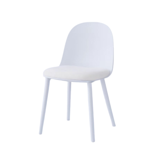 Materiales: Patas plástico, Asiento tapizado en tejido textil blanco