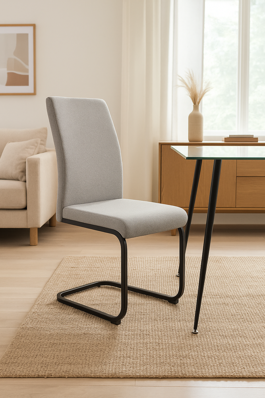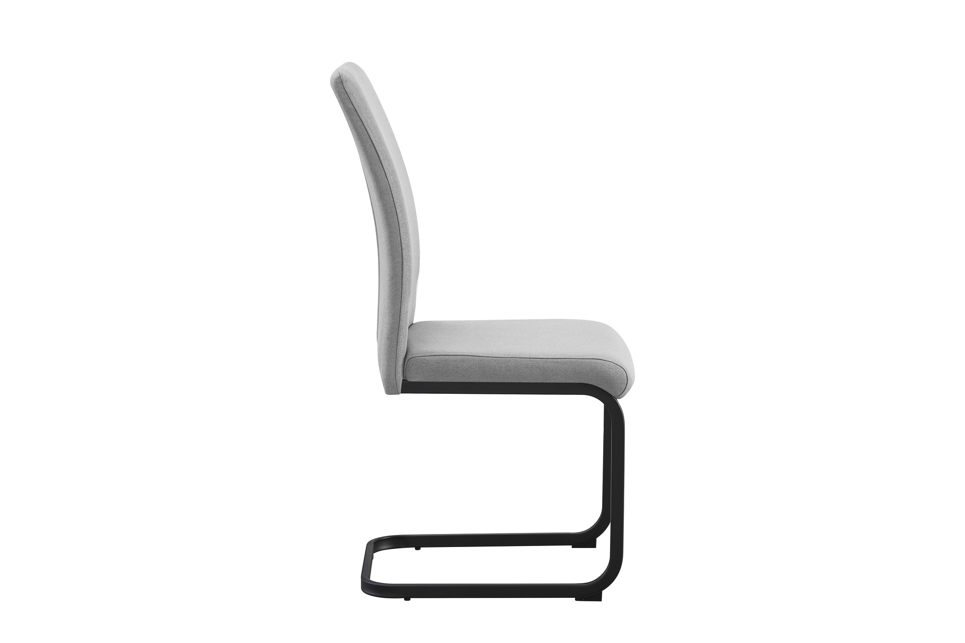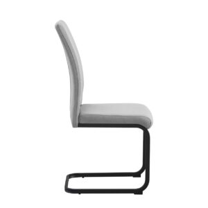Materiales: Patas y estructura en acero pintado en epoxi negro, con forma de patín. Asiento en tejido con acolchado interior en esponja para mayor comodidad.