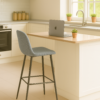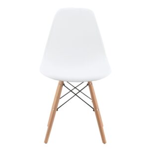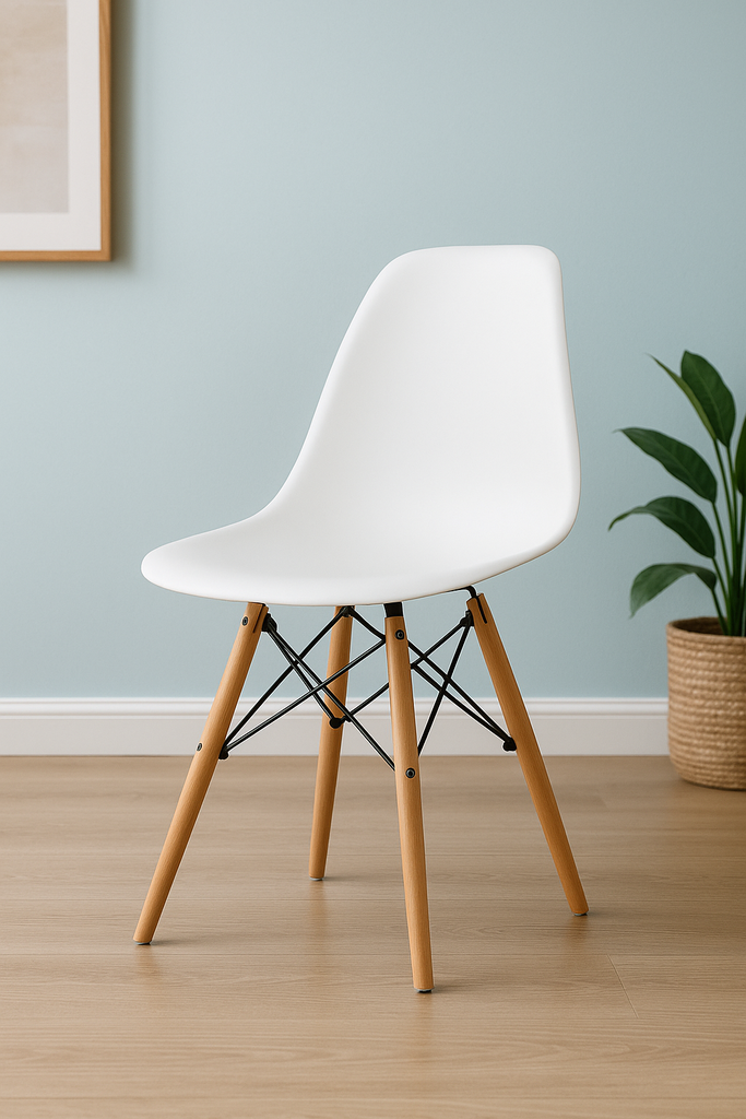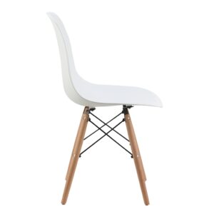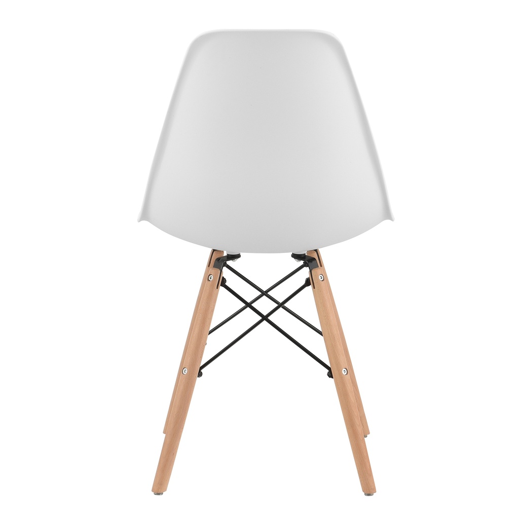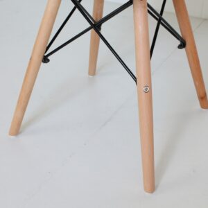 Materiales: Patas en madera 100% Haya, lacadas con un barniz que resalta su color natura. Uniones de acero pintado negro. Asiento inyectado en PP (polipropileno).