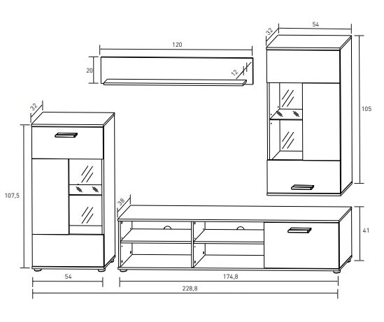 • Composición unica Leds 229 cms