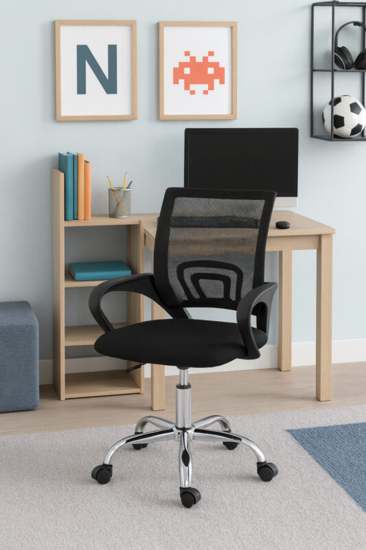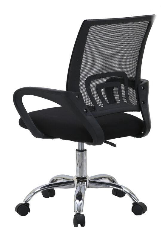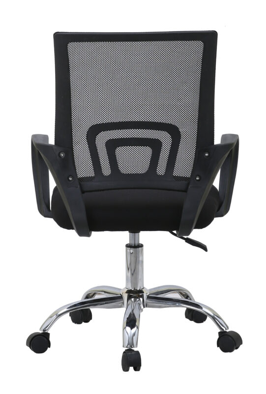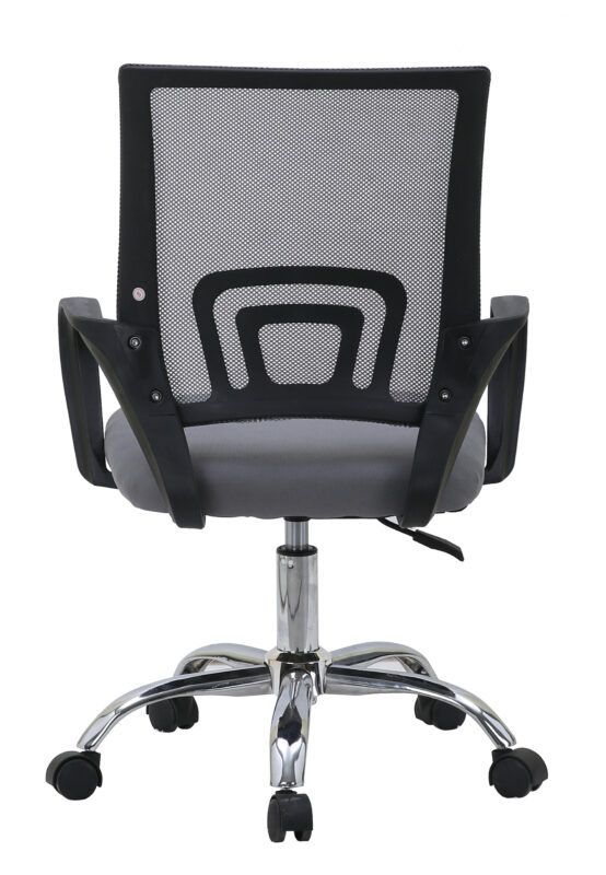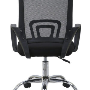 Respado de malla transpirable, con marco perimetral negro, que favorece la ventilación y proporciona un soporte lumbar báscio mediante un diseño integrado en la malla.