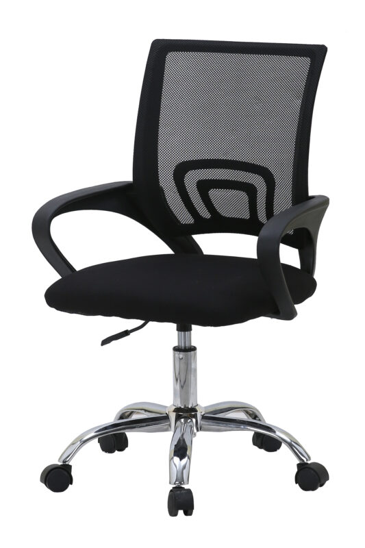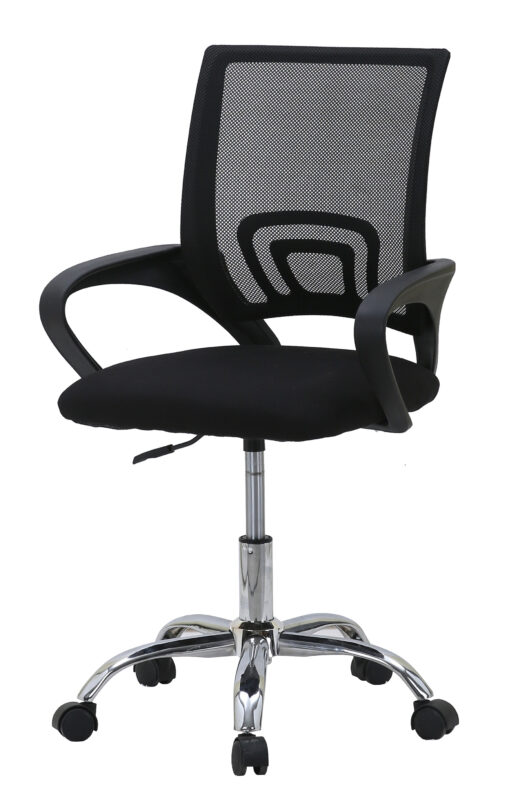Base giratoria de cinco radios con acabado cromado, que aporta mayor durabilidad y una apariencia más elegante.