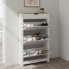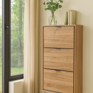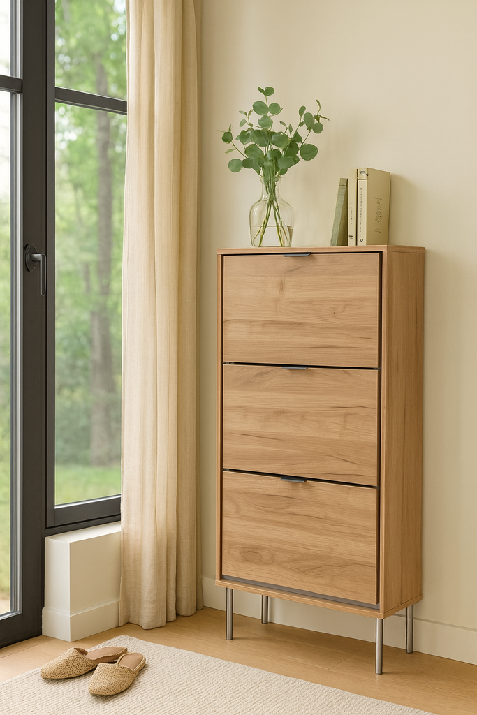 Medidas del producto (Ancho x Profundo x Alto): 630 x 235 x 1100mm Zapatero melamina, patas metal color niquel. Capacidad: 20-24 Pares (Zapatos Tallas grandes o pequeñas) Producto desarmado o en Kit, requiere un mínimo montaje.