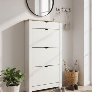 Medidas del producto (Ancho x Profundo x Alto): 780x240x1400mm Materiales: Tablero de Melamina de 15mm. Capacidad: 24-30 Pares (Zapatos Tallas grandes o pequeñas) Producto desarmado o en Kit, requiere un mínimo montaje.